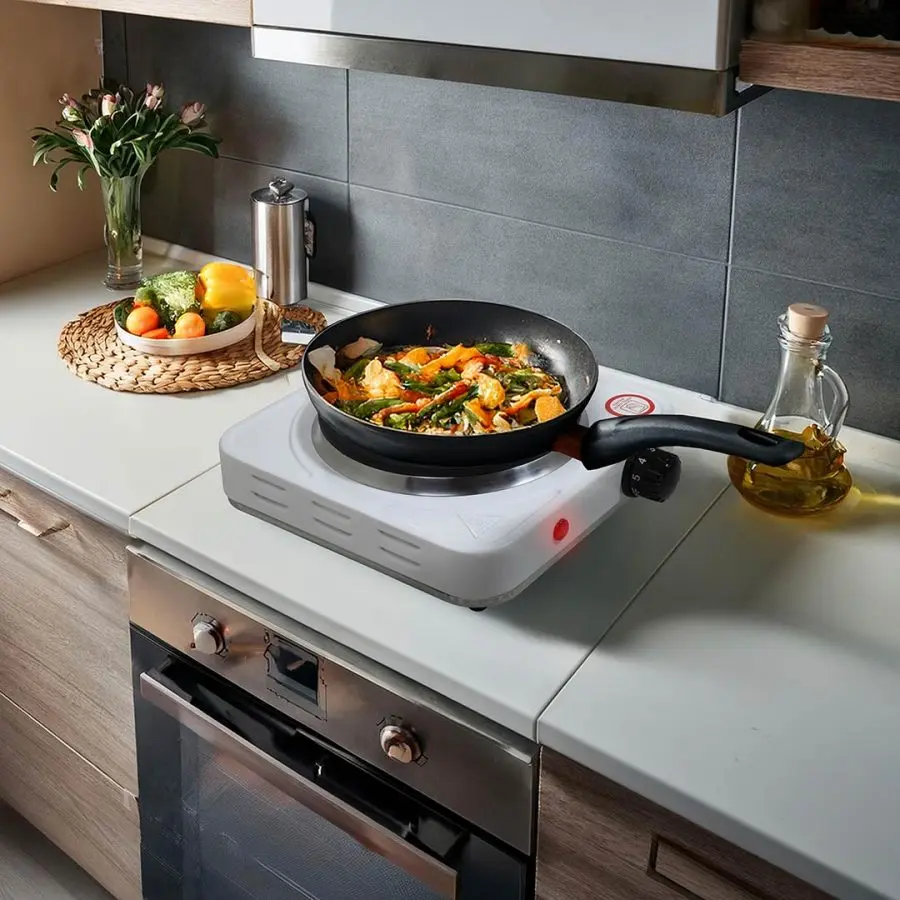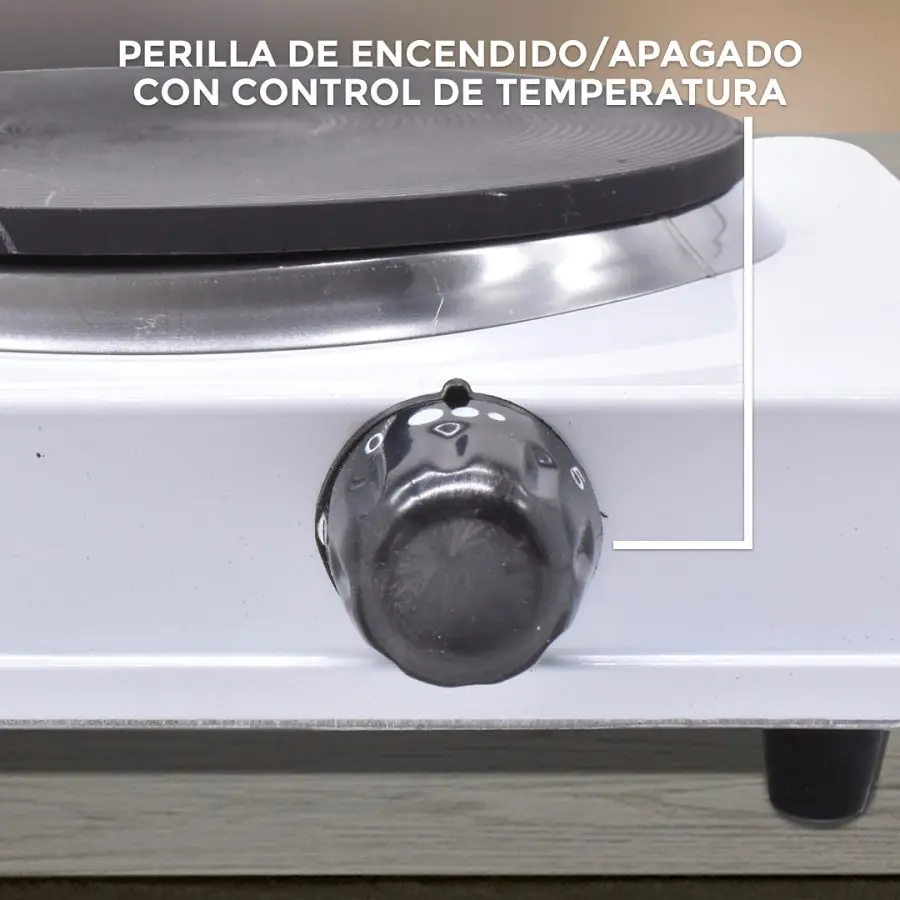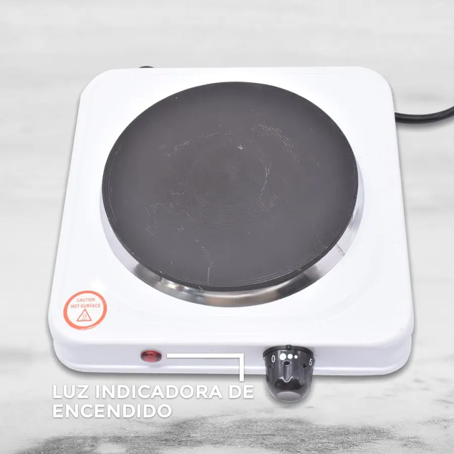 Potencia Eficiente: Sus 1000W garantizan un calentamiento rápido del plato de 15.5 cm, ideal para hervir, freír o calentar tus comidas.
